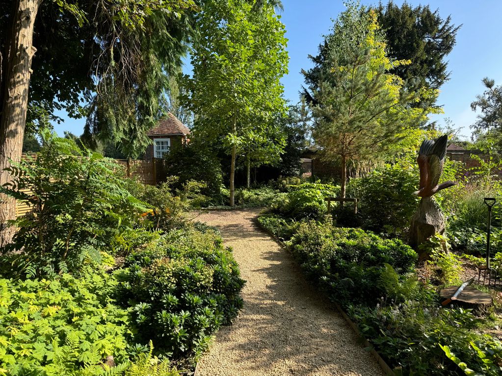 Replacing an underused section of lawn with a woodland garden, introducing some larger specimen trees, Pin Oak, tulip tree and some Scots pine. During the process we did remove an unhealthy sycamore and used this to create a sculpture of a Red Kite, as soon as this happened, a Red Kite nested in the tree above it!